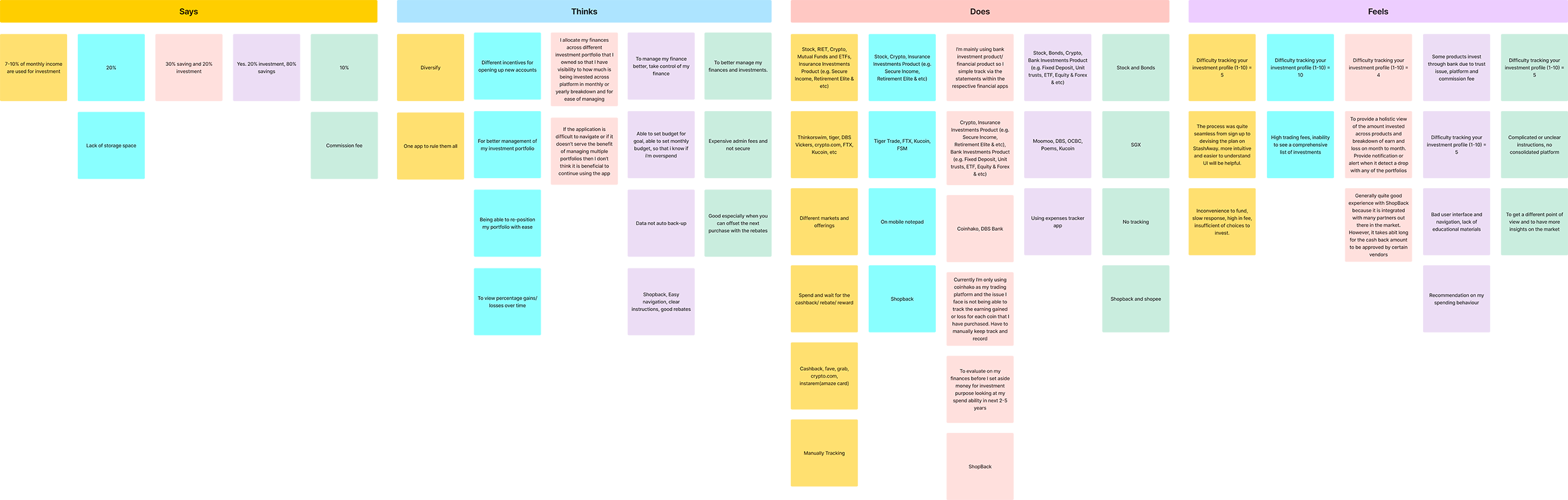 Nick has migrated to Singapore with her wife for more than 20 years. He is a tech-savvy guy, an experienced Art Director with a demonstrated history of working in the advertising agencies and media production industry, currently working in the insurance industry as a UX Design Lead. 10% of monthly income is used for investment. He uses multiple trading platforms as the platforms have different markets and offerings (e.g. stocks, REITS, crypto, mutual funds, ETFs, and insurance investment products).