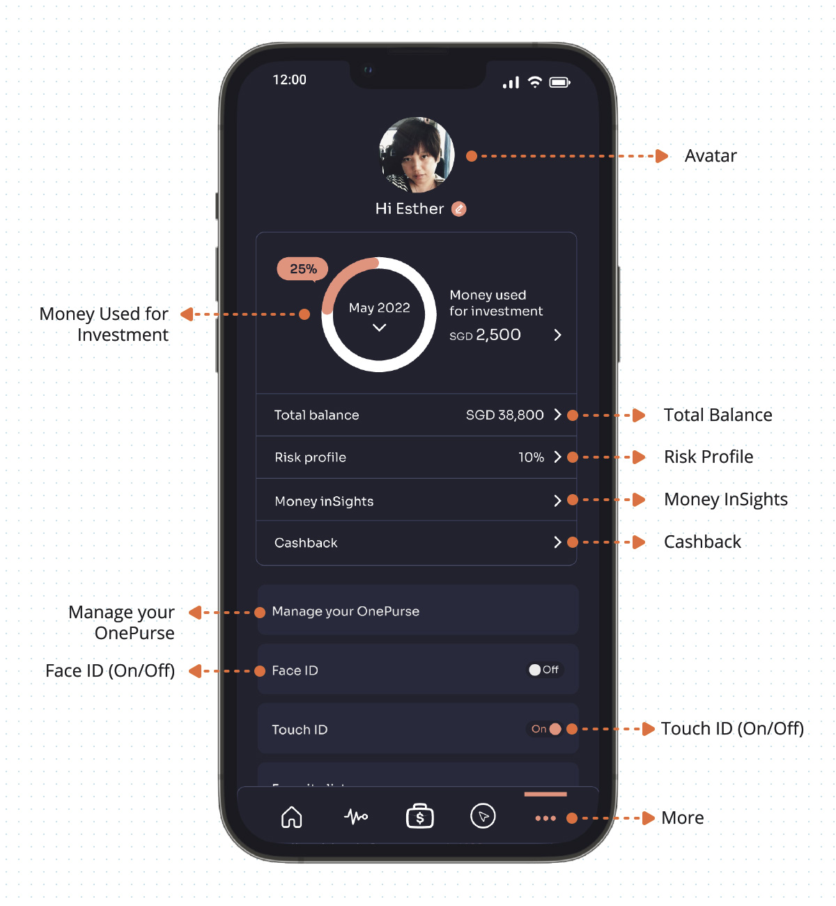 She hopes the apps can provide a one-stop solution, a holistic view of the amount invested across products, and a breakdown of earns and losses a month to month. Provide notification or alert when it detects a drop with any of the portfolios, being able to reposition the portfolio with ease.