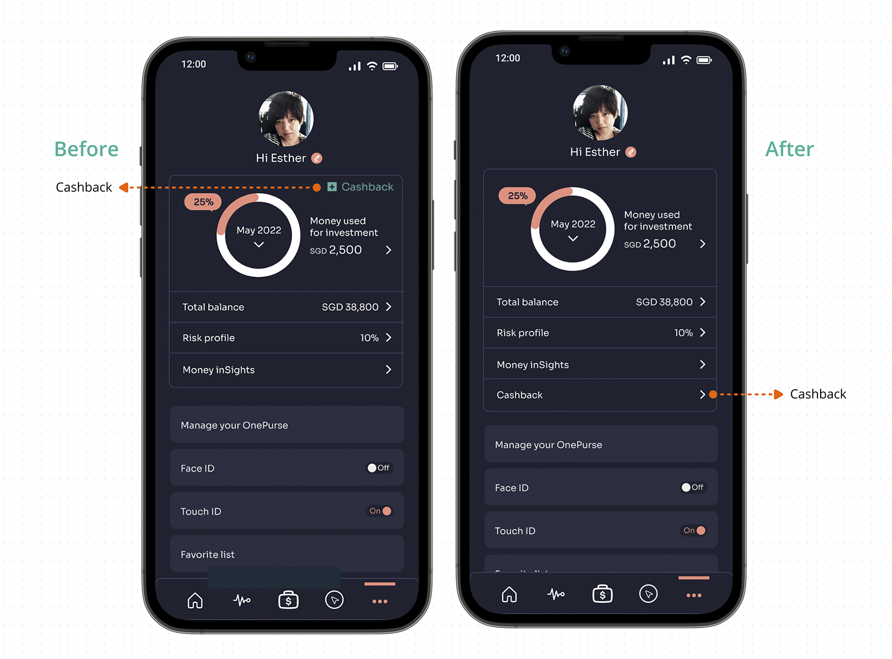 Challenge 4: The Cashback button is small and not obvious, the user may easily miss out.